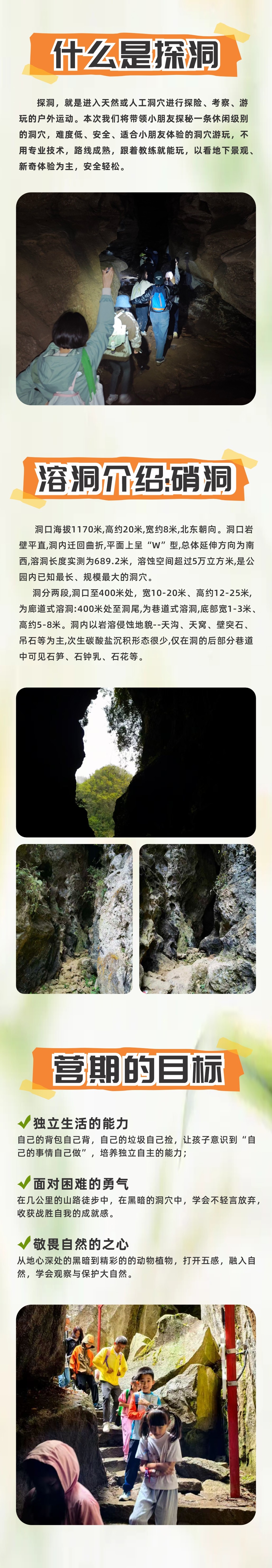 8、探洞全套装备由教练统一准备,家长无需自备。