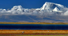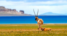 车行渐远,道路两旁是一望无际的戈壁与草甸交织的大地,枯黄与浅褐的色块肆意晕染,偶尔有几丛倔强的红景天,在碎石滩上绽放出艳丽的红,为这片寂静的荒原添上一抹亮色。藏野驴群会突然从车辙边掠过,鬃毛在风中飞扬;藏羚羊的身影一闪而过,像荒原上灵动的精灵,转眼便消失在远方的地平线。