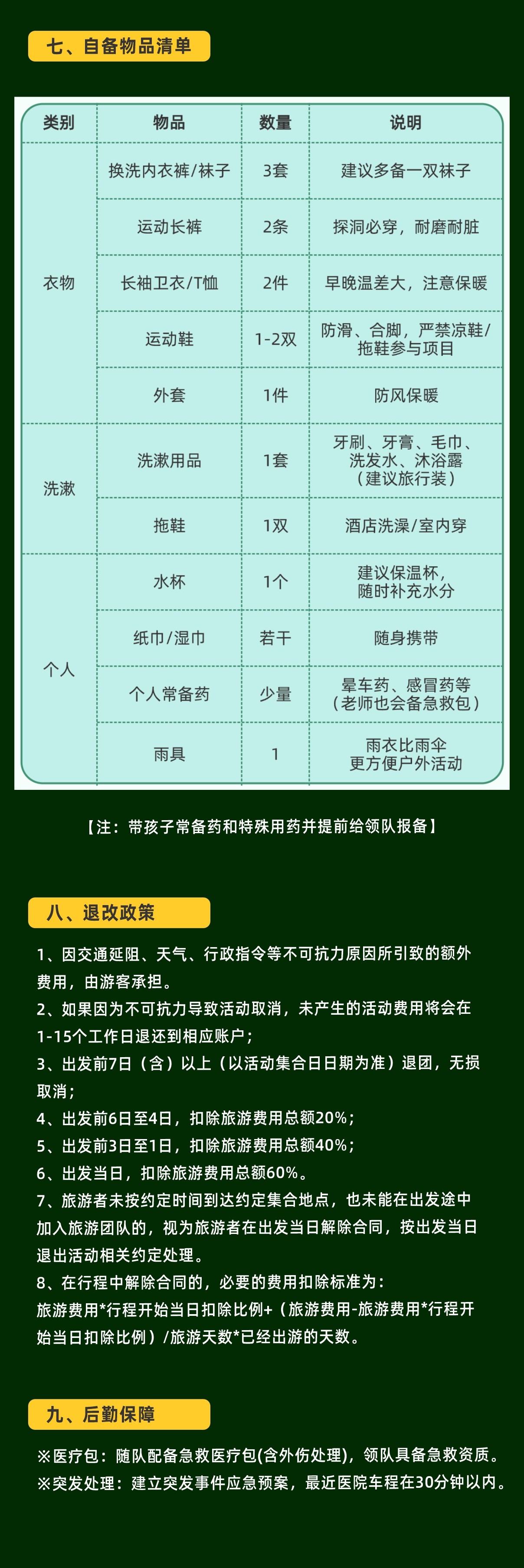 3、出发前7日(含)以上(以活动集合日日期为准)退团,无损取消;