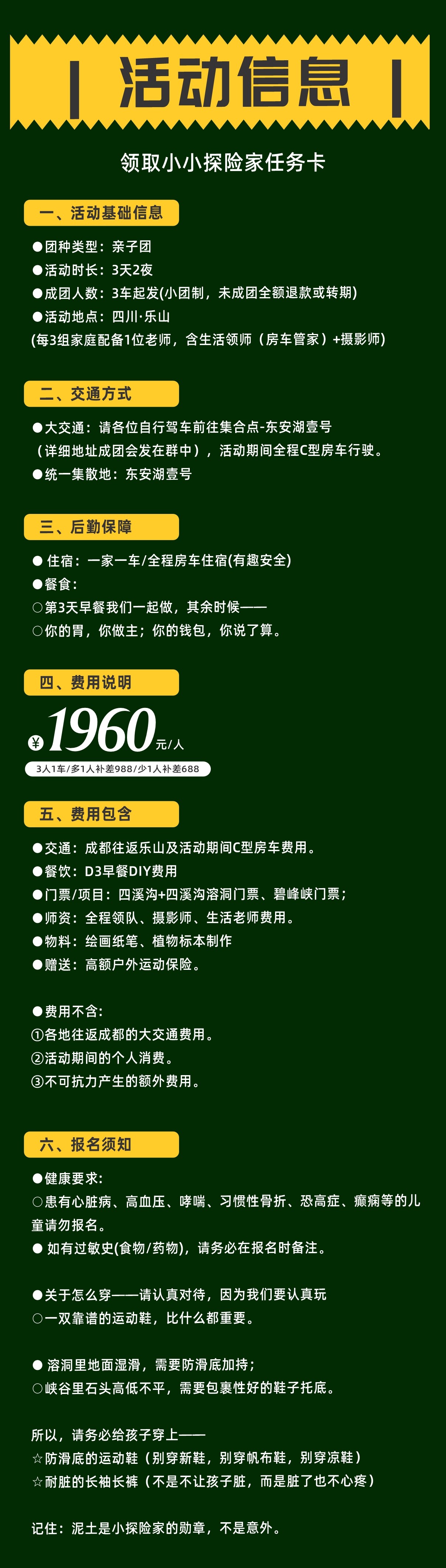 2.门票/项目:四溪沟+四溪沟溶洞门票、碧峰峡门票师资:全程领队、摄影师、生活老师费用。