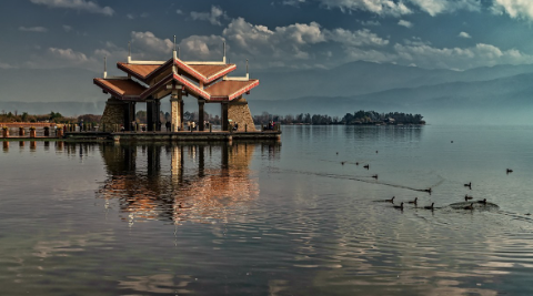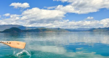 接着,前往泸缘崖观景台。站在这里,俯瞰整个泸沽湖,美景尽收眼底。远处的山峦起伏,近处的湖水清澈。
